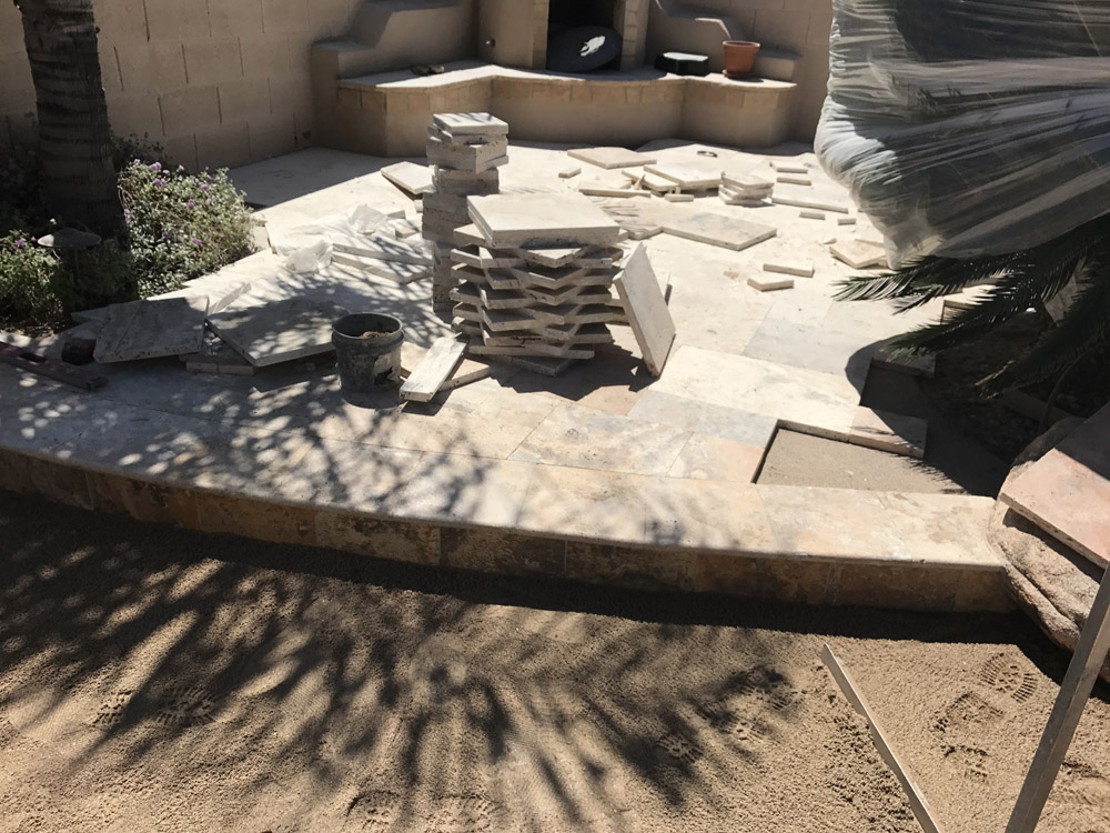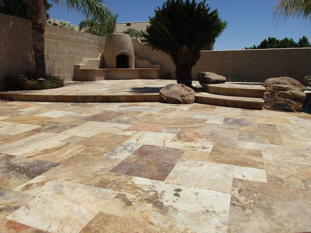 This project called for the replacement of concrete stepping stones with a beautiful travertine walkway. The addition of the travertine also provided an excellent opportunity for the owner’s to extend their patio space at their Scottsdale home, adding comfort and additional outdoor space.